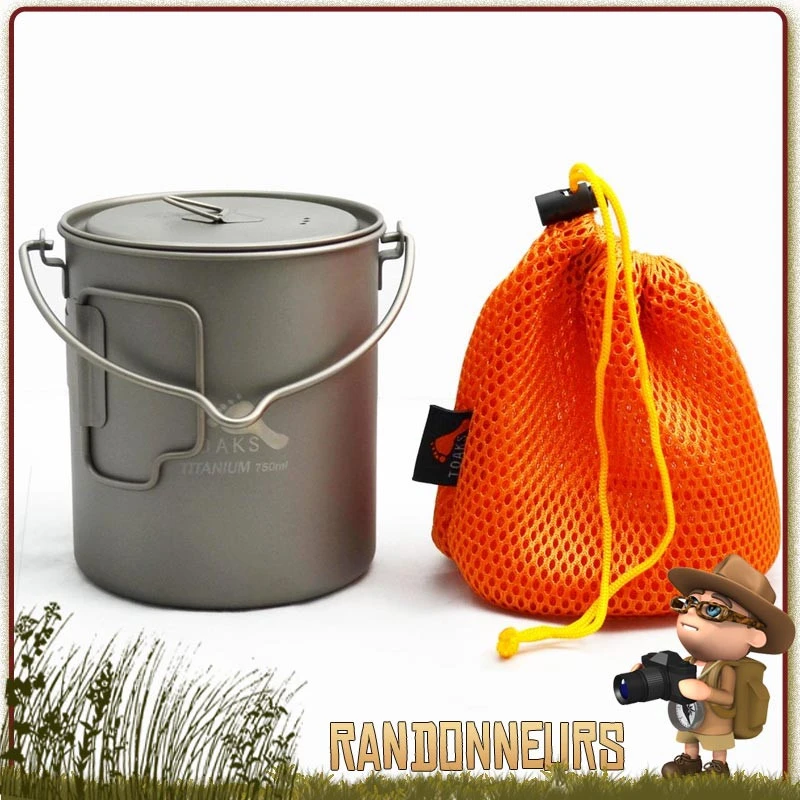 Le pot titane Toaks est ultra lĂ©ger pour la randonnĂ©e ultra light en mode solo. Pratique sa anse pour le suspendre au dessus d’un feu de camp