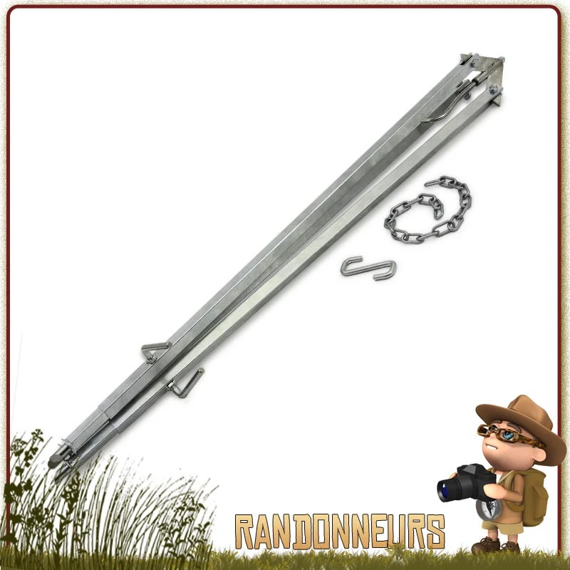 La chaîne réglable en hauteur, avec crochet de maintien, permet de commander la taille à laquelle votre popote sera positionnée au-dessus de votre flamme de réchaud bushcraft ou feu de camp, permettant d’adapter la cuisson des aliments de façon plus flexible.