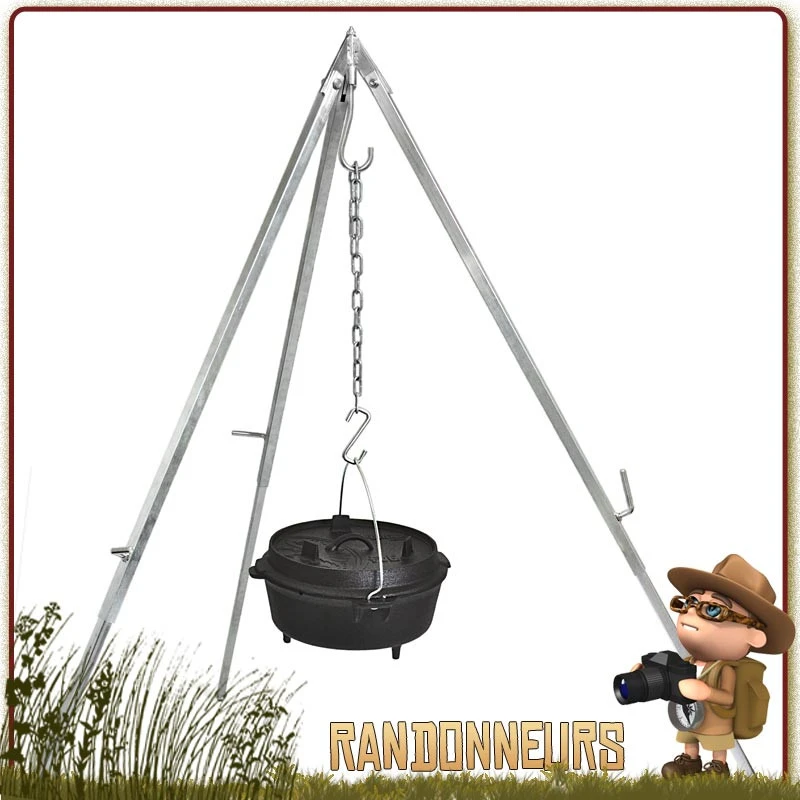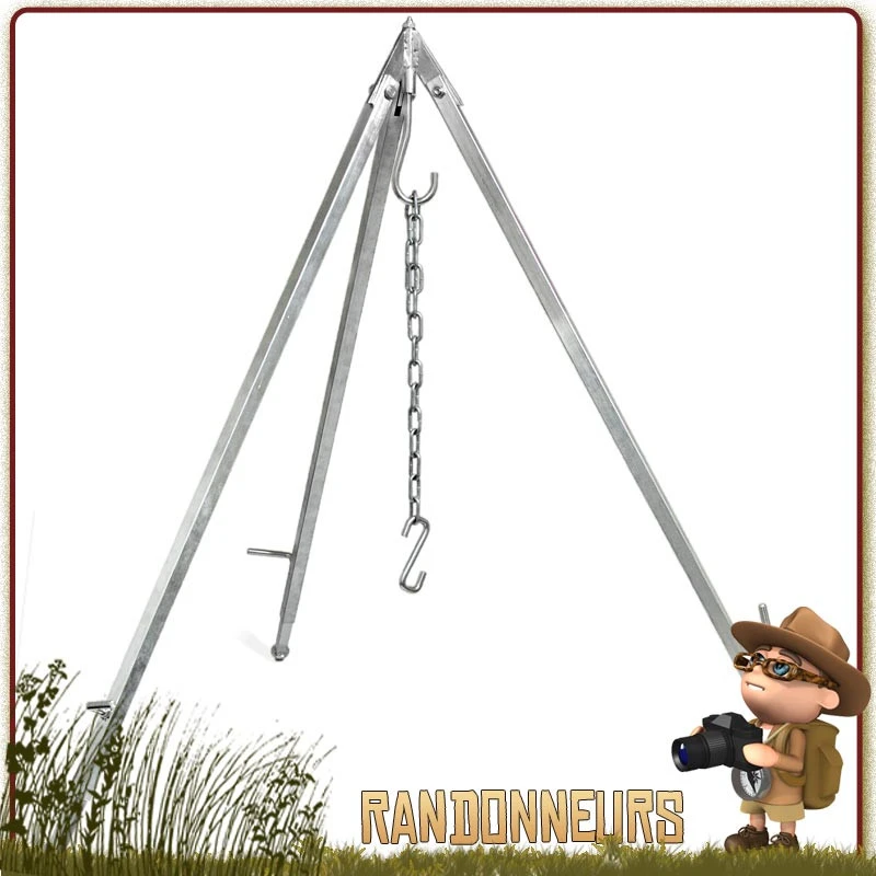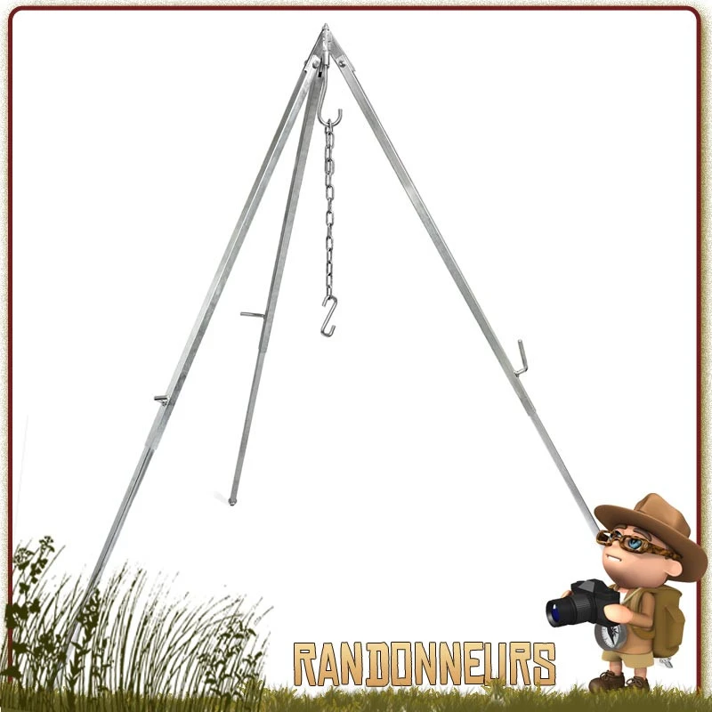 Trépied démontable et repliable, robuste et compact, en acier pour le support de votre popote ou réchaud bushcraft. Positionnez facilement, à la façon bushcraft, votre popote de camping inox ou alu au dessus de votre réchaud ou feu de camp pour la cuisson de vos aliments.