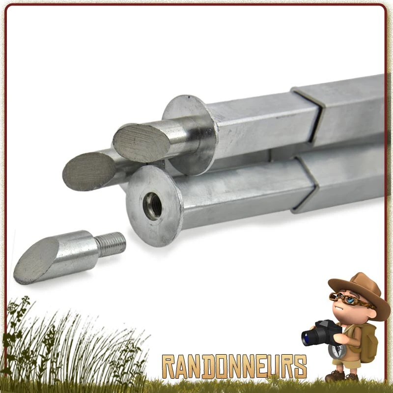Les dernières tiges se terminent par des pointes qui permettent un très bon ancrage dans le sol et assurer la bonne stabilité du Trépied.