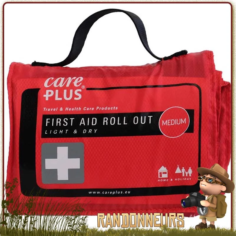 Trousse de premiers secours et de soins Care Plus contenant du matériel de soins adapté pour les bobos de la vie quotidienne, les activités de plein air, la randonnée et les balades