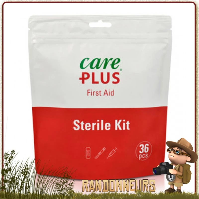 Cette trousse de premiers soins, en kit de matériel médical stérile, est compacte, complète, et spécialement adaptée aux destinations où le risque sanitaire est présent, pour le randonneur et les aventuriers du bout du monde. Les éléments de ce kit de soins stérile pourront se substituer au matériel médical des régions reculées du globe et où le ravitaillement médical est aléatoire.