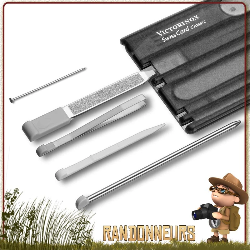 SwissCard Classic de Victorinox, outils au format de poche équipé de divers outils tels :